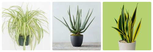 Từ trái qua: cây dây nhện; cây lô hội (nha đam); cây lưỡi hổ.